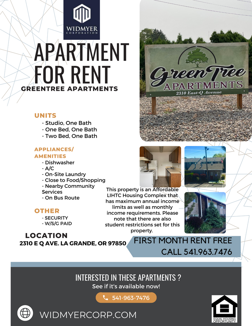 Introducing our Studio/One Bath, ground floor apartment located in La Grande, OR. This cozy apartment offers a convenient living experience with water, sewer, and garbage included in the rent. Enjoy the ease of on-site laundry facilities, as well as the peace of mind knowing that our manager office and maintenance team are available on-site to assist with any needs that may arise. Experience comfortable and hassle-free living in this well-maintained community. Contact us today to schedule a tour and make this Studio One Bath Apartment your new home!